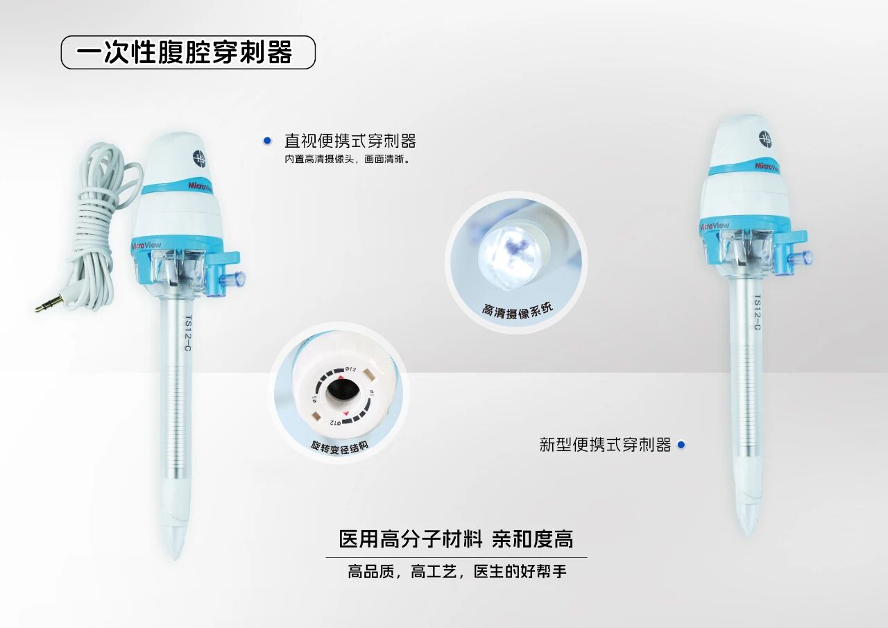 我们还带来了在微创手术中扮演关键角色的产品—一次性腹腔镜穿刺器,它自带旋转变径设计,两个型号之间可旋转变换,操作便捷。直视便携式穿刺器内置高清摄像模组,它在外科手术中可提升医生操作的精准度,是微创手术中不可或缺的“得力助手”。